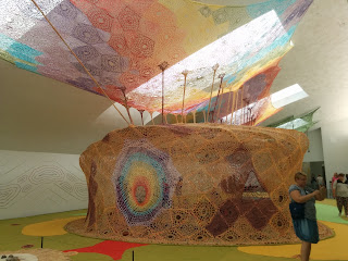 Keväällä oli kuulemma buumi virkata Bilteman muurarinlangasta säänkestäviä liinoja pihapöydälle. Meiltäkin löytyi yksi rulla, mutta lopputulos näyttää kyllä tiskirätiltä!